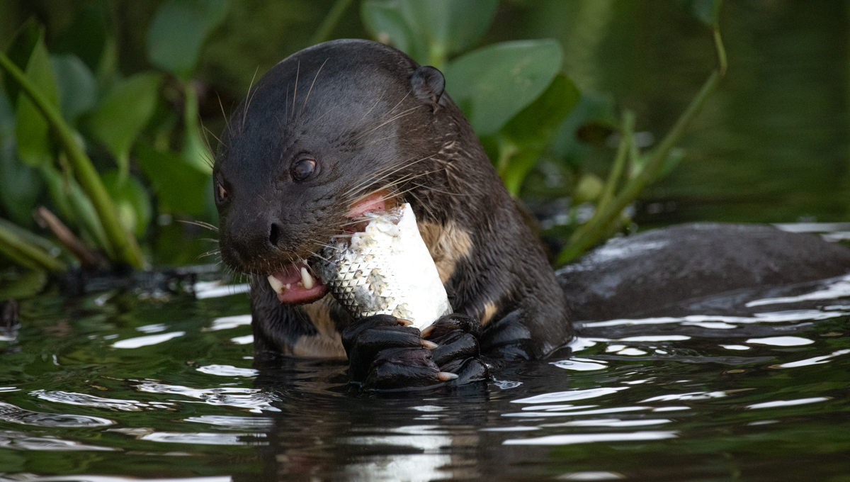 The following 6 days we explored the Porto Jofre section of the Encontro das Aguas State Park traversing the larger rivers Cuiaba and Piquri and their smaller tributaries in our comfortable 10 seater boat from sunrise (our morning alarm being the chatter of the chakalakas) to stunning sunsets. There was sufficient space for our camera equipment. We had plenty of water, ice, cold drinks, beer and guarana and enjoyed a packed warm lunch served in triffins. We rotated seat positions in the boat every day so as to experience the view from all angles. The boat had a collapsible roof to provide shade in the heat of the day and when we were not filming.